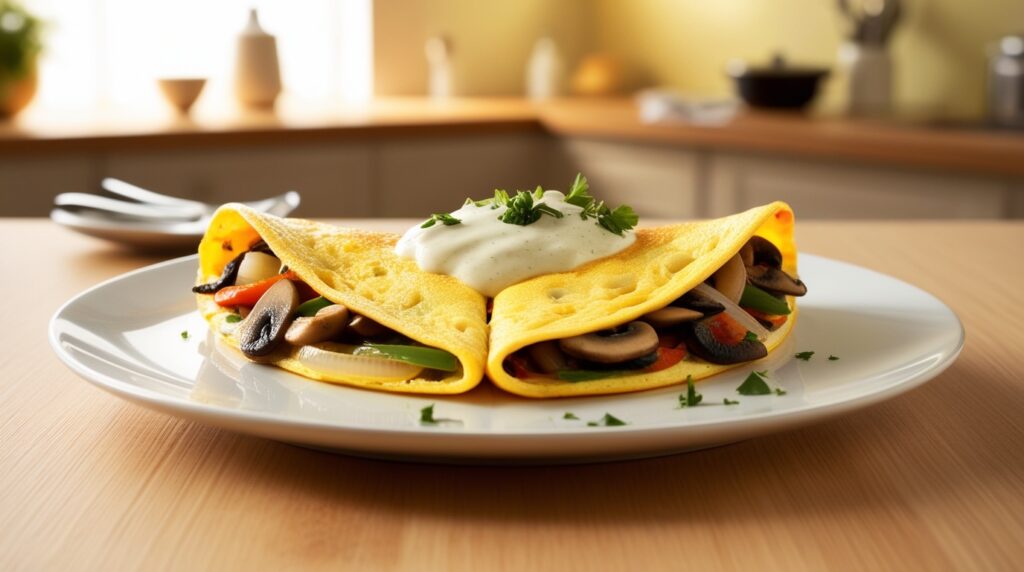 For a great omelette, pick the right eggs and prep them well. Use 2 eggs for each omelette. Add milk and cheese for creaminess and flavor. For a vegetarian breakfast option, try cheddar, feta, or goat cheese.